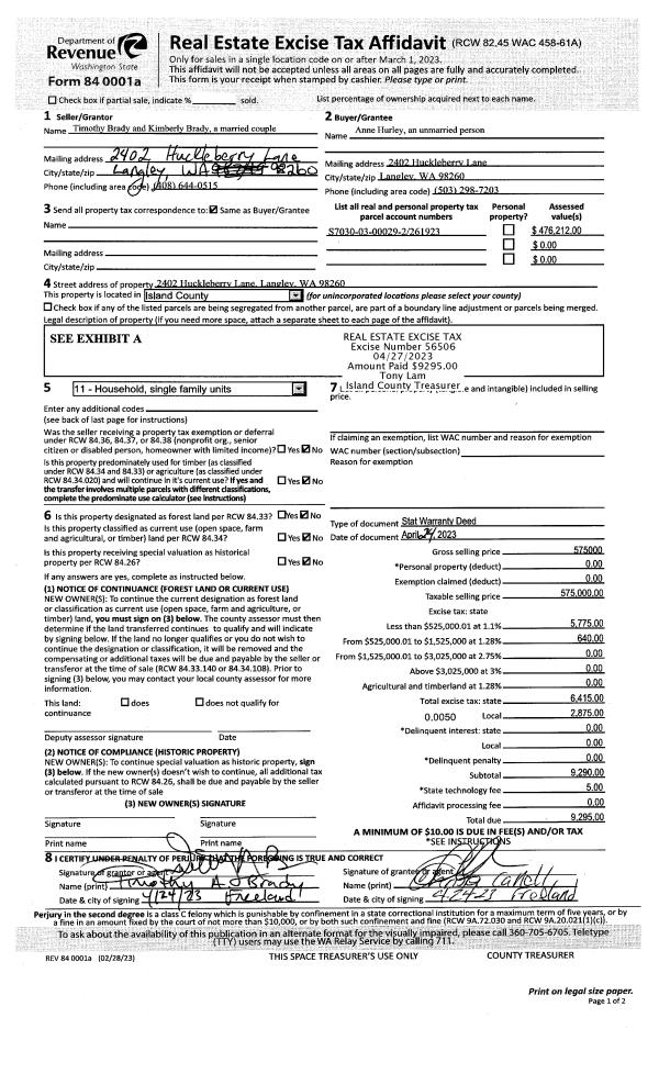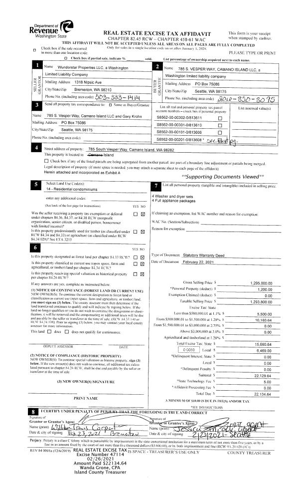 | Mailing Address: | 361 ALTA VIA DR CAMANO ISLAND, WA 98282 | % Ownership: | 100.0000000000% |
