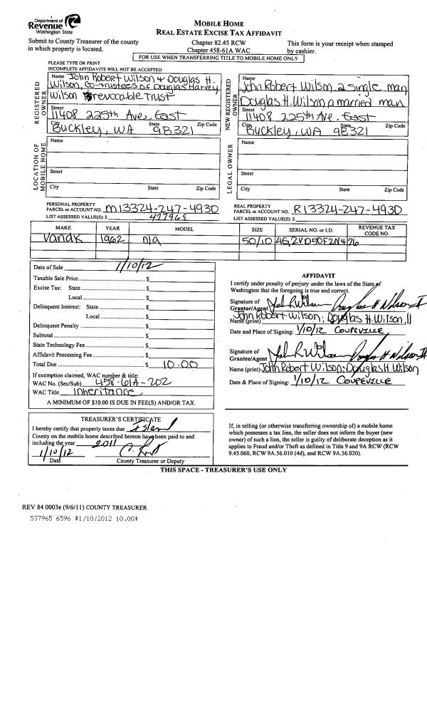 | Mailing Address: | 1320 N OAK HARBOR ST #27 OAK HARBOR, WA 98277 | % Ownership: | 100.0000000000% |
