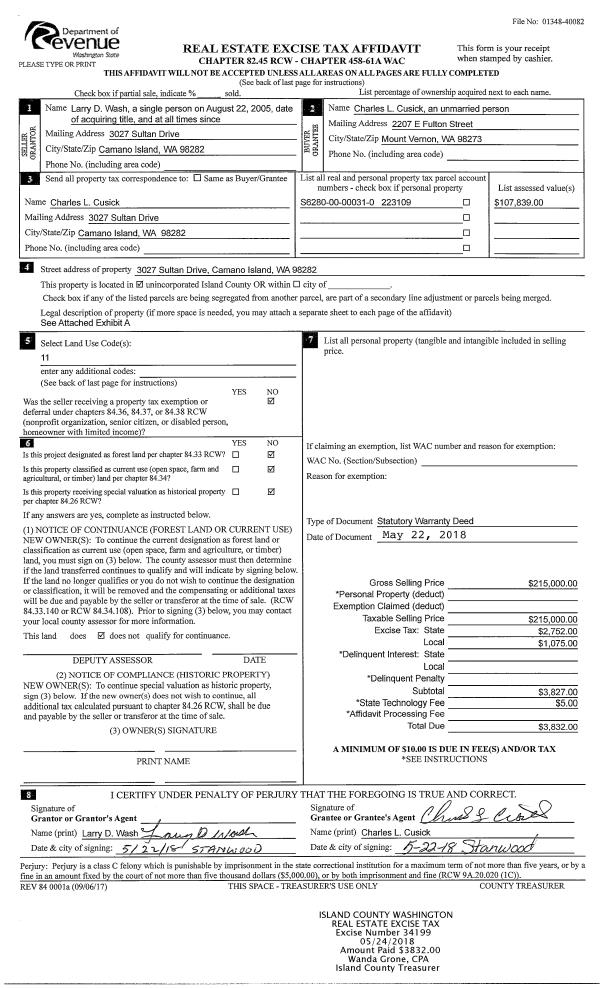 | Mailing Address: | 130 PERCHERON LN COUPEVILLE, WA 98239 | % Ownership: | 100.0000000000% |