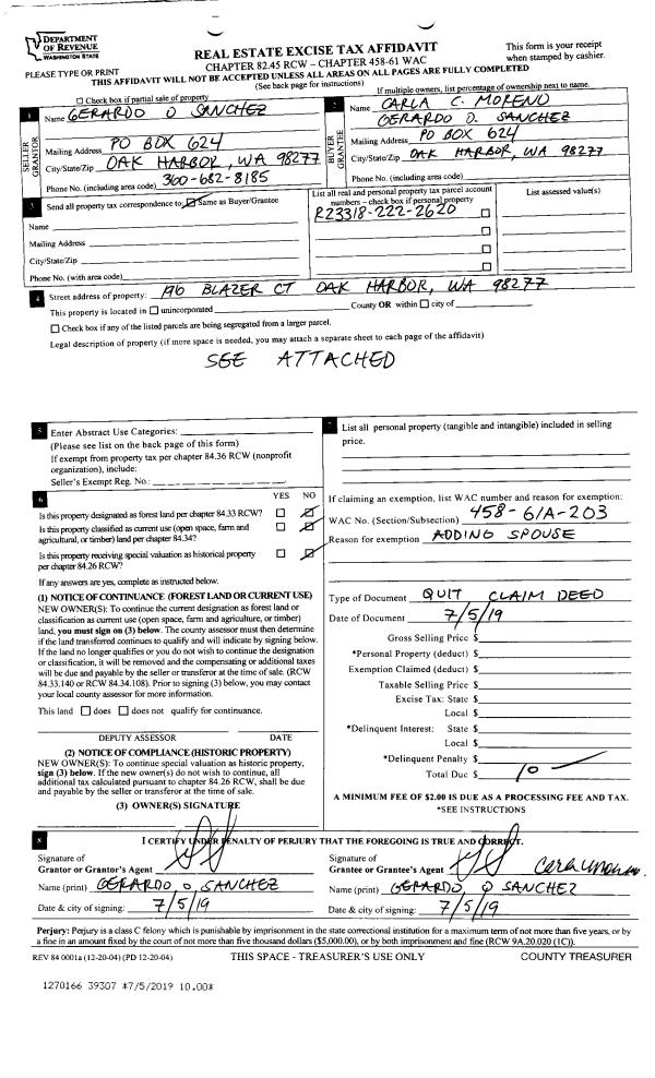 | 2 | 05/21/2019 | QCD | Quit Claim Deed | HILL, STERLING | CAREY, BARBARA JOANN | | | $0.00 | 39714 | 4468636 |