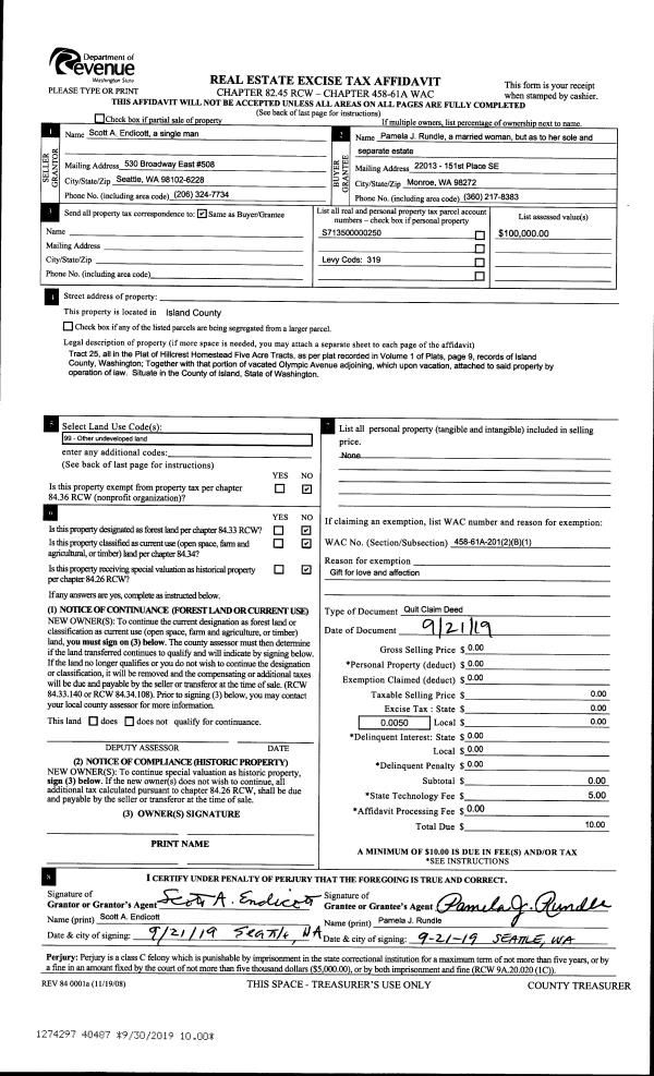 | 1 | 09/05/2019 | QCD | Quit Claim Deed | LEGGETT, STEPHEN | LEGGETT TTEE, STEPHEN W | | | $0.00 | 40465 | 4472283 |