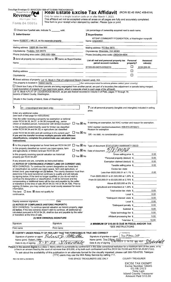 | Mailing Address: | AMY K SCHROEPFER 604 UTSALADY RD CAMANO ISLAND, WA 98282-7230 | % Ownership: | 100.0000000000% |