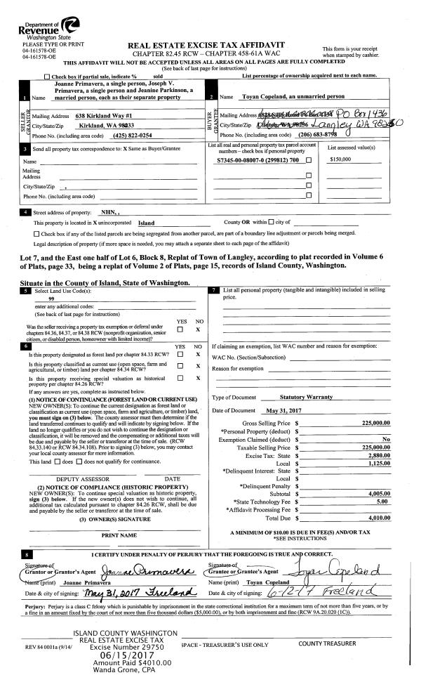| 1 | 08/09/2017 | WD | Warranty Deed | KVAM, ERIK & PAULA | LEUSCHEL III, OTTO H | | | $700,000.00 | 30591 | 4427945 |