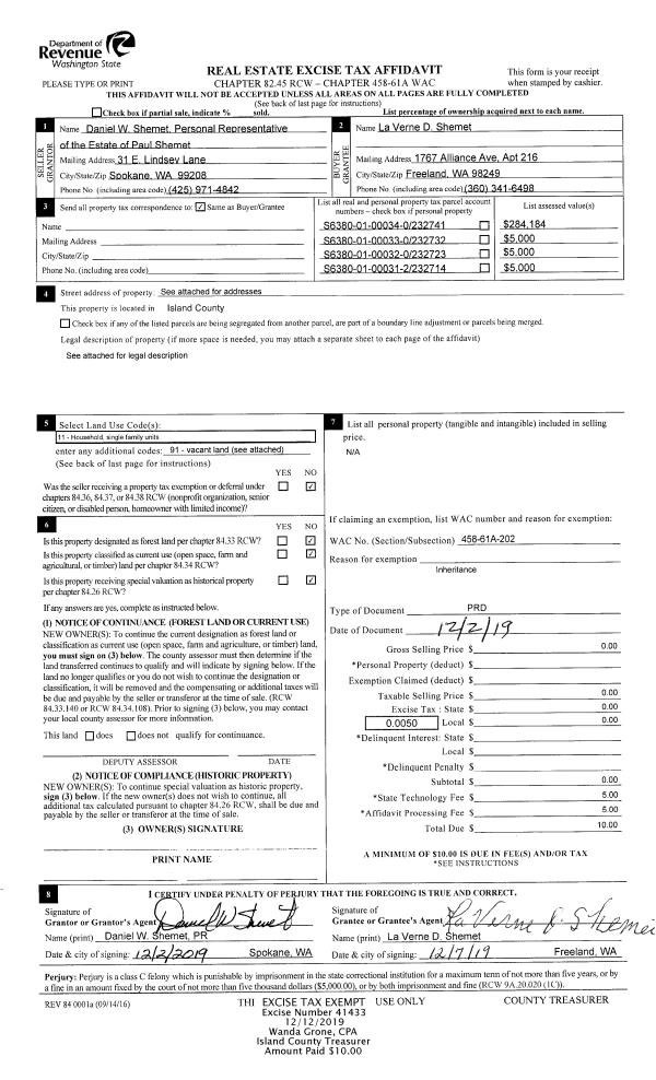 | Mailing Address: | KATHLEEN D SPRINGER 4515 SMUGGLERS COVE RD FREELAND, WA 98249 | % Ownership: | 100.0000000000% |