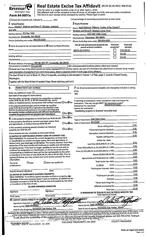 | Mailing Address: | PO BOX 927 COUPEVILLE, WA 98239 | % Ownership: | 100.0000000000% |