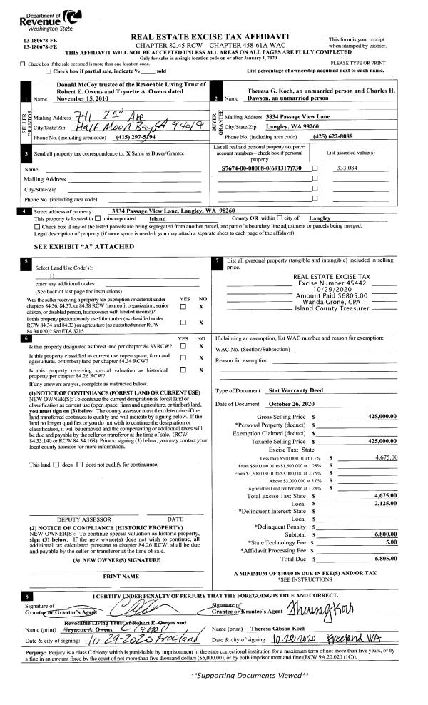 | Mailing Address: | 2917 EAGLE BLUFF RD GREENBANK, WA 98253 | % Ownership: | 100.0000000000% |