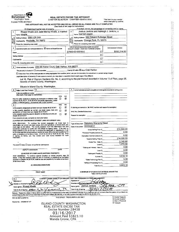 | Mailing Address: | 1250 SW HELLER ST C2 OAK HARBOR, WA 98277 | % Ownership: | 100.0000000000% |