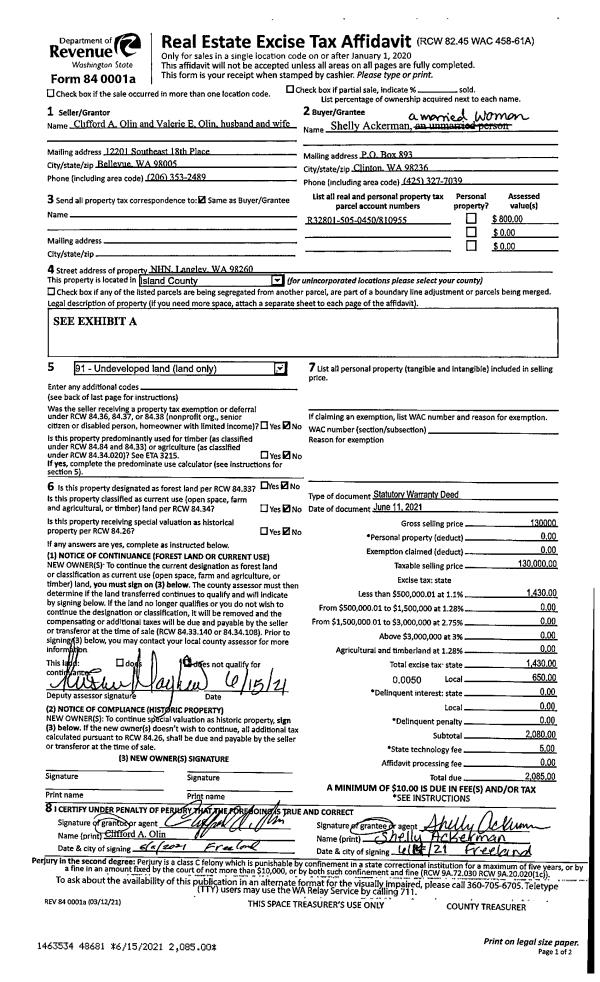 | Mailing Address: | 3859 PASSAGE VIEW LN LANGLEY, WA 98260 | % Ownership: | 100.0000000000% |