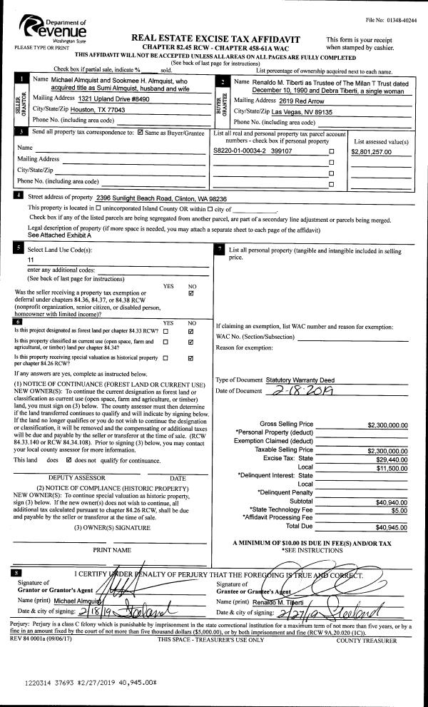 | Mailing Address: | KAREN ANN NORTON TTEE 3849 PASSAGE VIEW LN LANGLEY, WA 98260 | % Ownership: | 100.0000000000% |