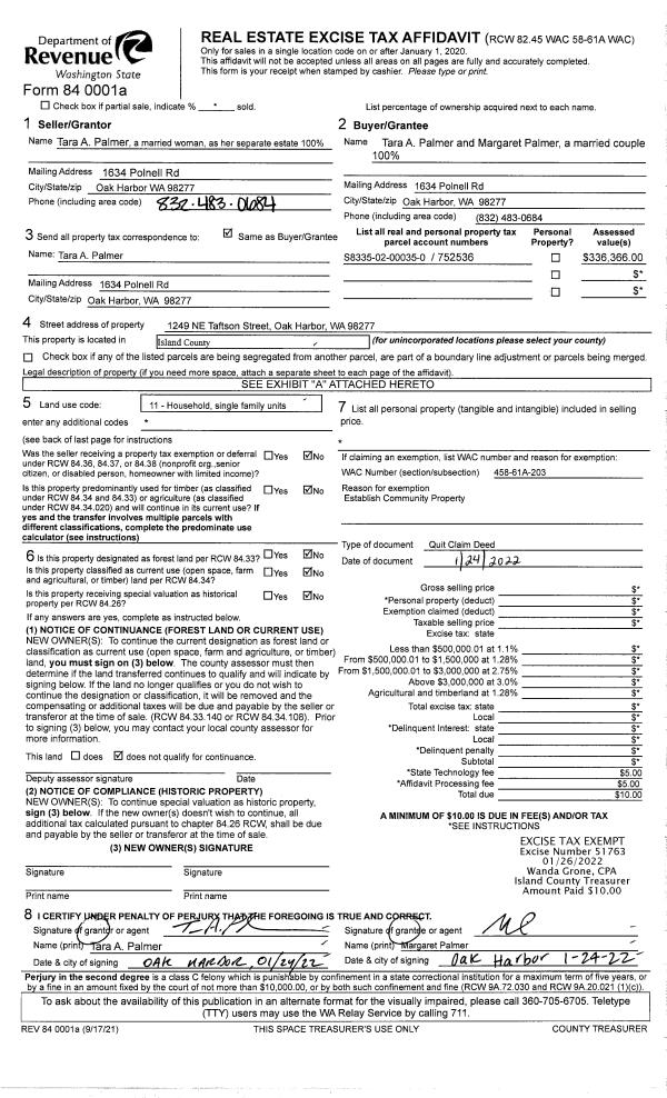 | 1 | 07/23/2021 | QCD | Quit Claim Deed | NORTON TTEE, KAREN | NORTON TTEE, JAMES HOWARD | | | $0.00 | 49396 | 4525634 |