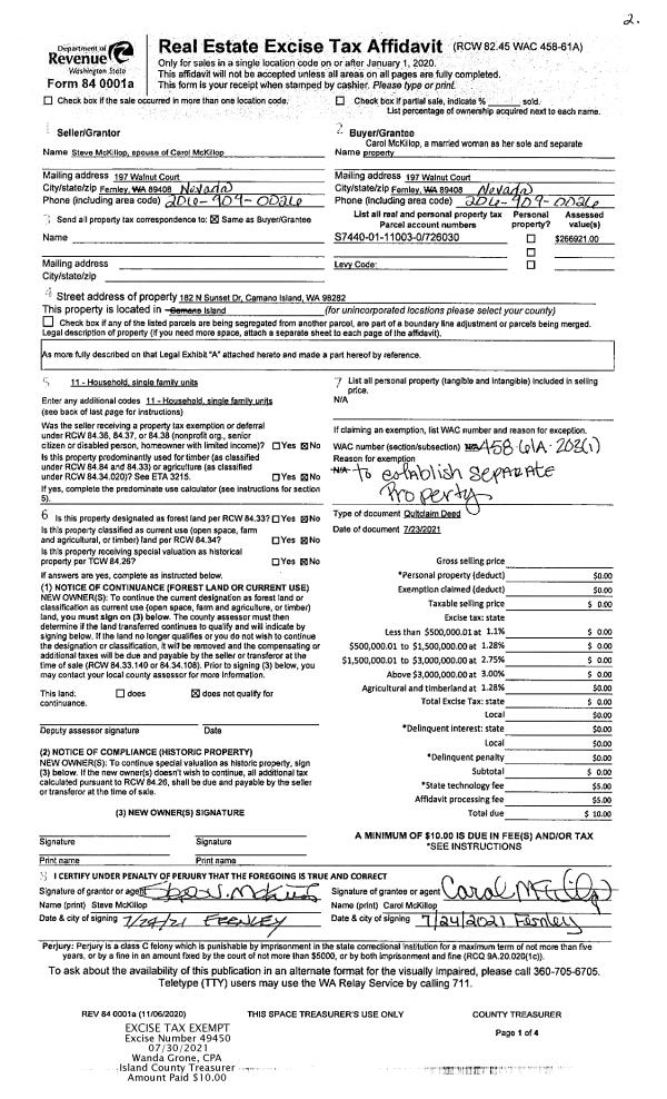 | Mailing Address: | MICHELE M ANDERSON 5014 CEDAR ACRES LN LANGLEY, WA 98260-9208 | % Ownership: | 100.0000000000% |
