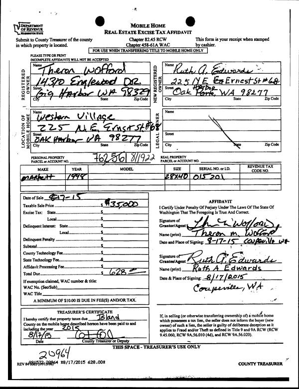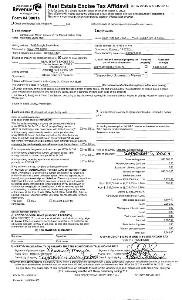 | Mailing Address: | MARY BETH BOSTON 2026 DONNA DRIVE COUPEVILLE, WA 98239 | % Ownership: | 100.0000000000% |