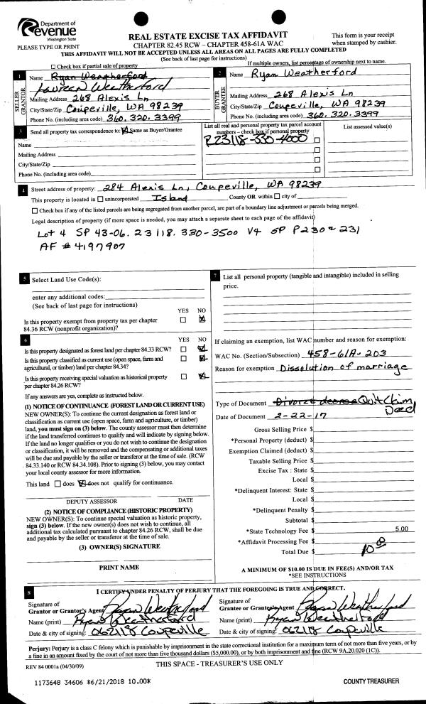 | Mailing Address: | PO BOX 734 OAK HRBOR, WA 98277 | % Ownership: | 100.0000000000% |