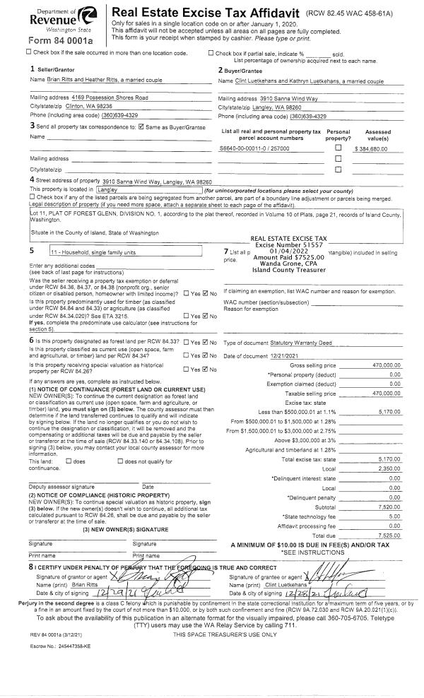 | 1 | 10/08/2021 | GRANTD | Grant Deed | BEACH DRIVE FARM FAMILY LTD | WHIDBEY CAMANO LAND TRUST | | | $0.00 | 50541 | 4531742 |