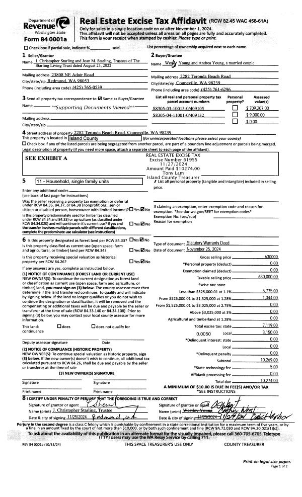 | 2 | 10/01/1996 | WD | Warranty Deed | OAK, HARBOR E | CHO, JAMES & | | | $75,000.00 | 63848 | 96018586 |