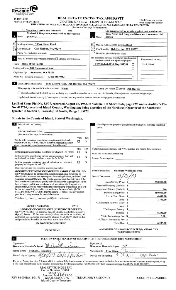 | 2 | 12/19/2018 | WD | Warranty Deed | HAZLETT, JAMES A | HAZLETT TTEE, JAMES A | | | $0.00 | 37177 | 4457397 |