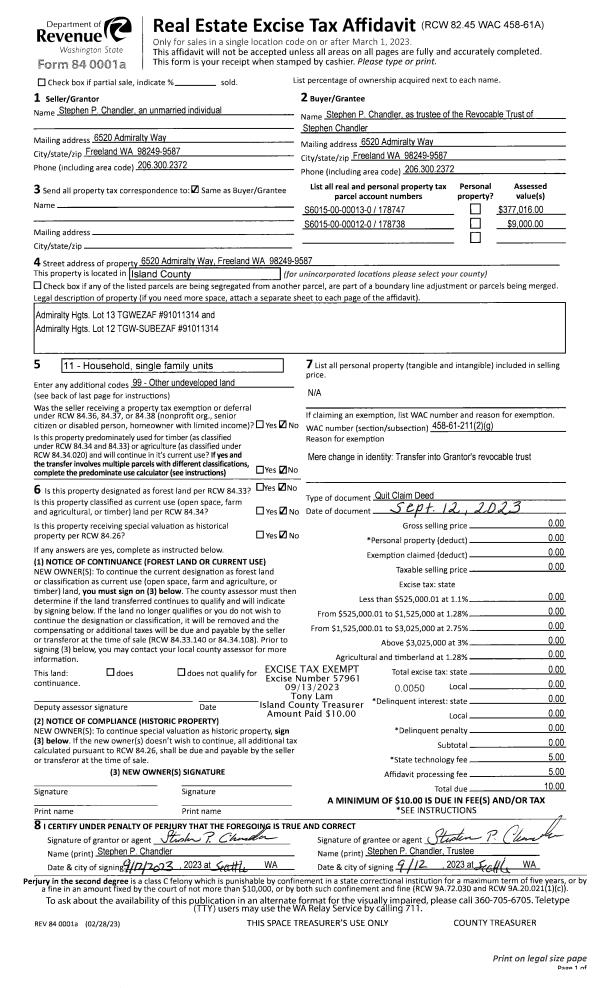 | Mailing Address: | 3853 31ST AVE WEST SEATTLE, WA 98199 | % Ownership: | 100.0000000000% |