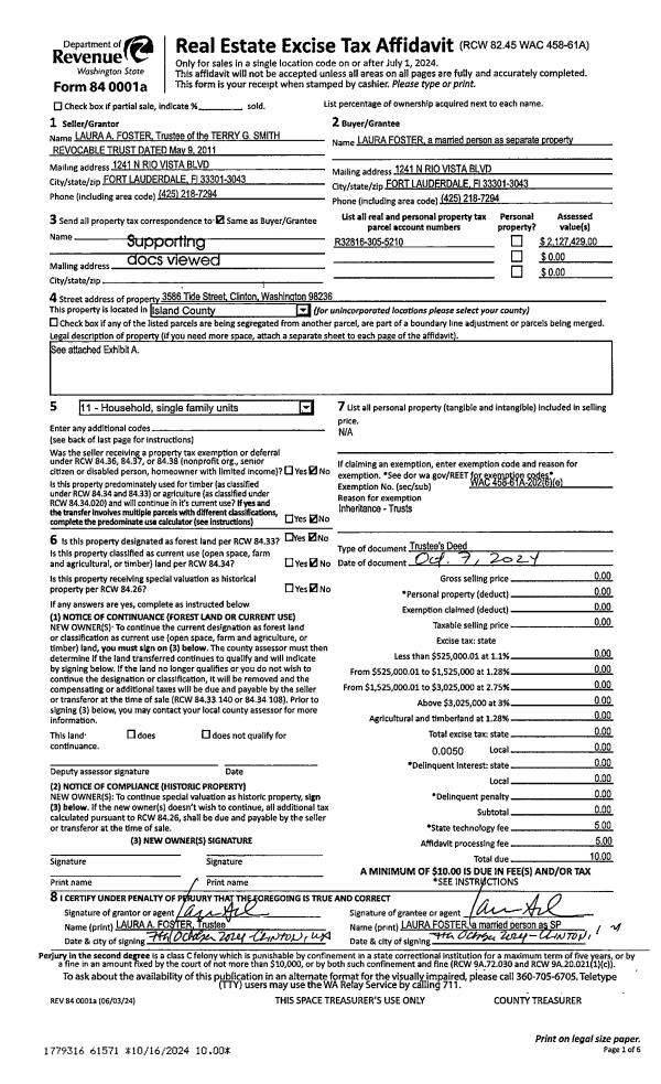 | Mailing Address: | 1004 NE LEACH DR COUPEVILLE, WA 98239 | % Ownership: | 100.0000000000% |