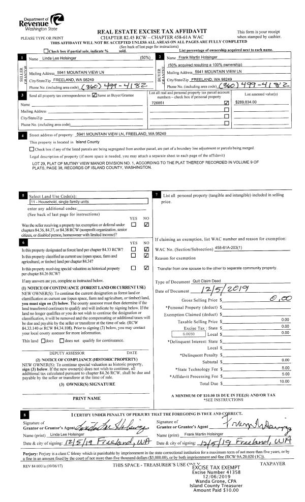 | Mailing Address: | 4454 TOWHEE LN GREENBANK, WA 98253 | % Ownership: | 100.0000000000% |