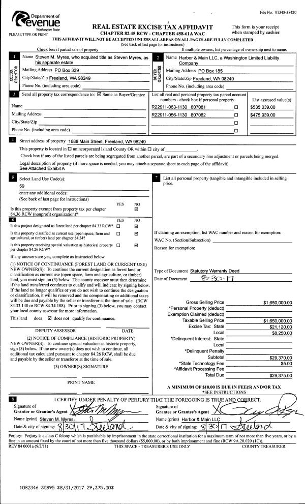 | Mailing Address: | 846 PARK AVE OAK HARBOR, WA 98277 | % Ownership: | 100.0000000000% |