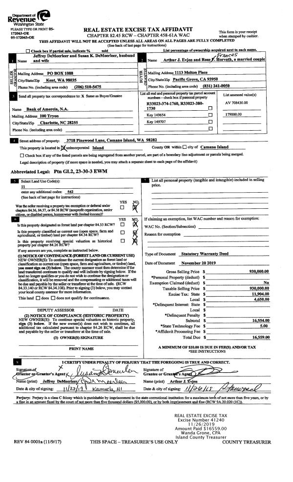 | Mailing Address: | DENISE LAROQUE 4366 CERULLO DR OAK HARBOR, WA 98277 | % Ownership: | 100.0000000000% |