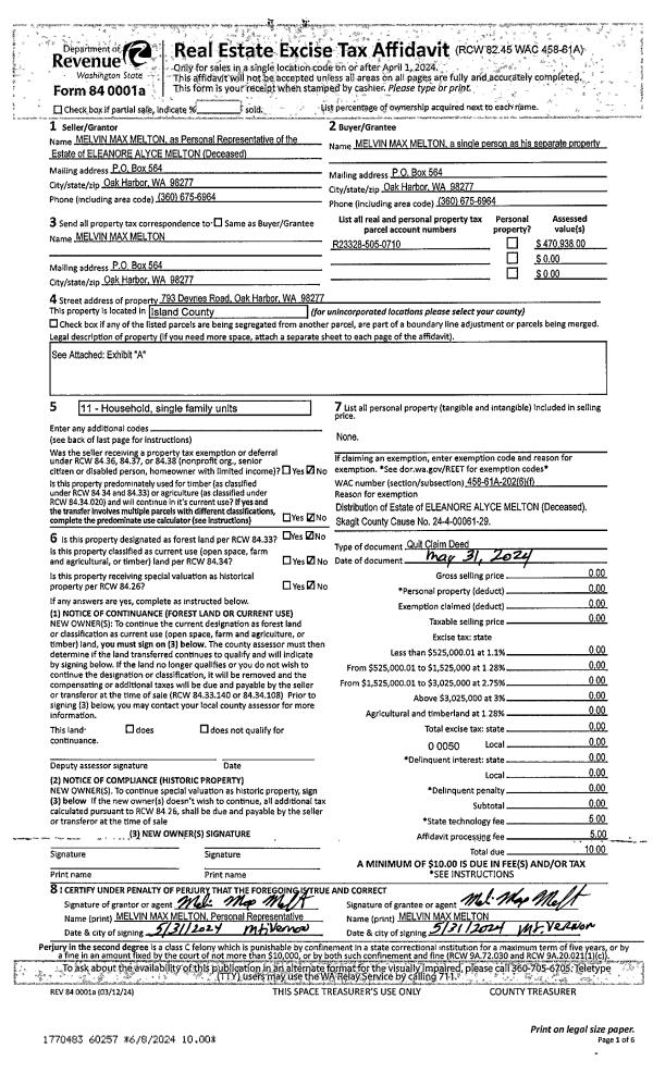 | Mailing Address: | SHIRLEY CORBETT 1825 NW 2ND AVE OAK HARBOR, WA 98277 | % Ownership: | 100.0000000000% |