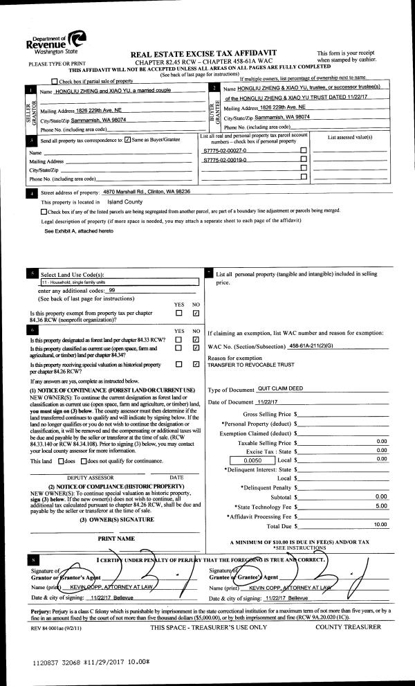 | Mailing Address: | 1501 NW 9TH PL OAK HARBOR, WA 98277 | % Ownership: | 100.0000000000% |