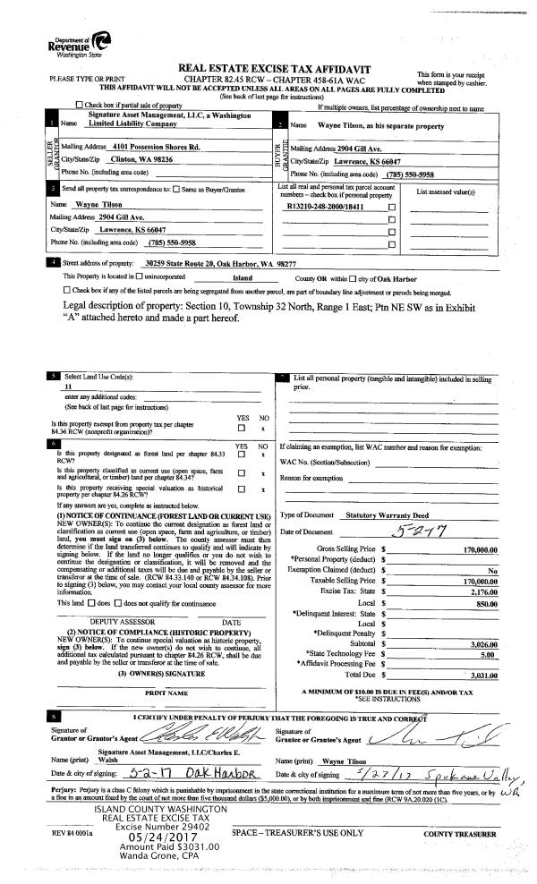 | Mailing Address: | MARY ANN G SANTOS 1555 NW 9TH PLACE OAK HARBOR, WA 98277 | % Ownership: | 100.0000000000% |