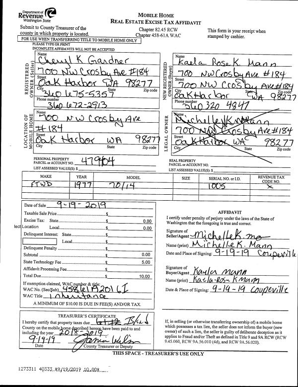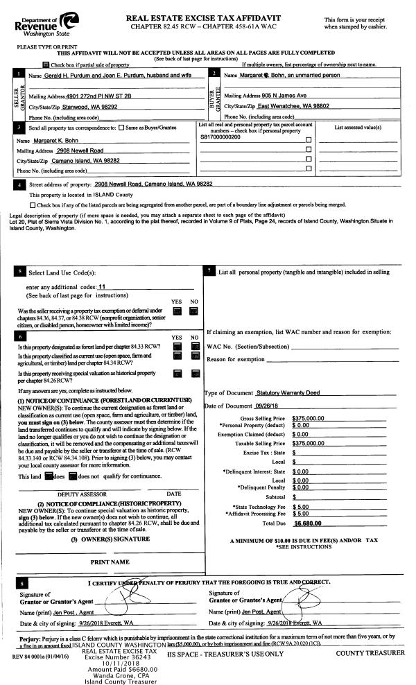 | Mailing Address: | 3611 DRIFTWOOD DR CLINTON, WA 98236 | % Ownership: | 100.0000000000% |