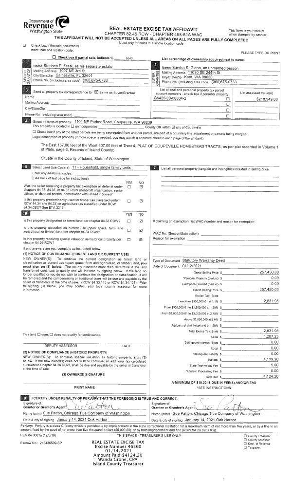 | Mailing Address: | 2410 JAMES PL UNIT 502 LANGLEY, WA 98260-6742 | % Ownership: | 100.0000000000% |