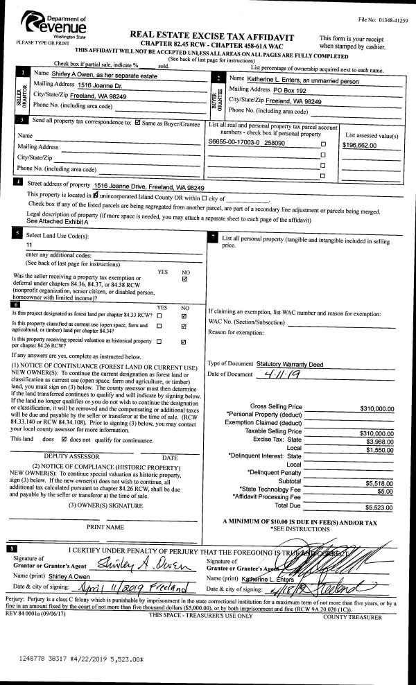 | Mailing Address: | 5658 PAULEINA CT FREELAND, WA 98249 | % Ownership: | 100.0000000000% |
