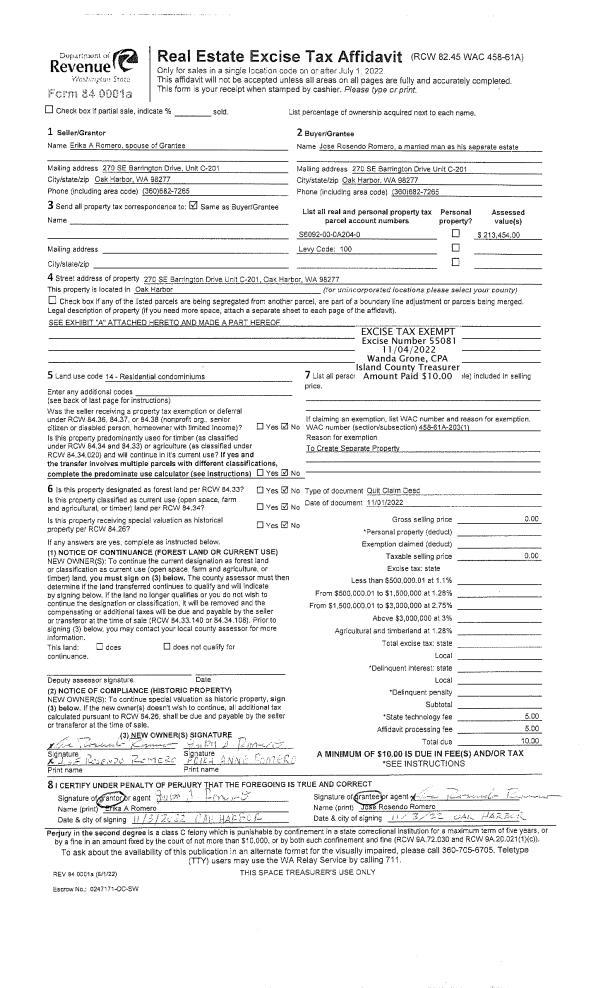 | Mailing Address: | JANICE C O'MAHONY 5634 CARIE LANE FREELAND, WA 98249 | % Ownership: | 100.0000000000% |