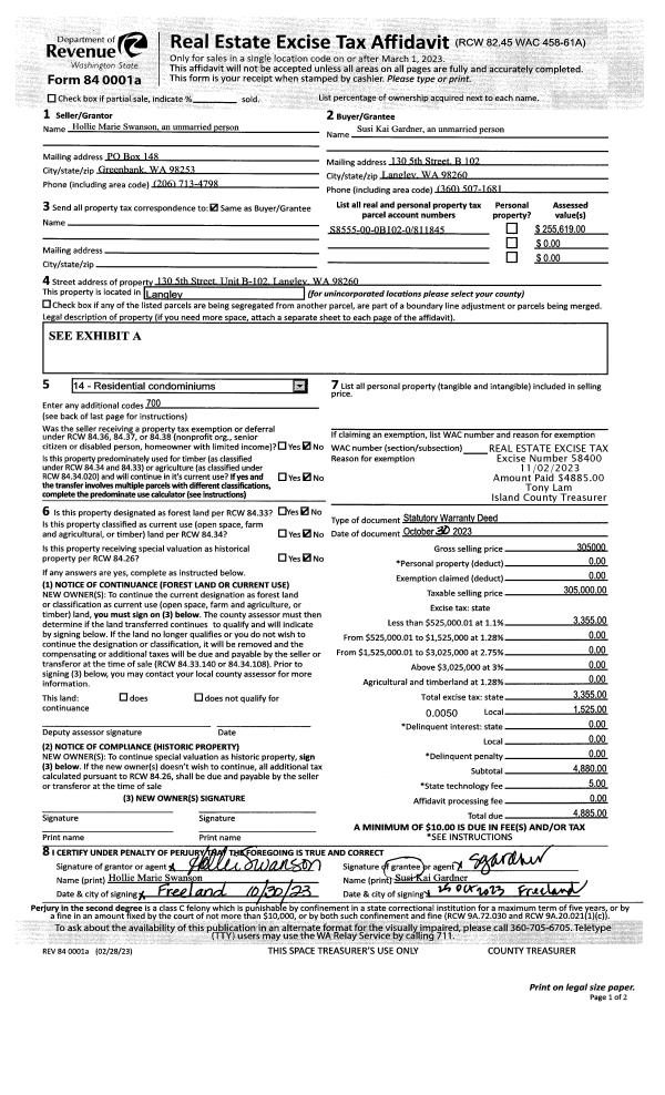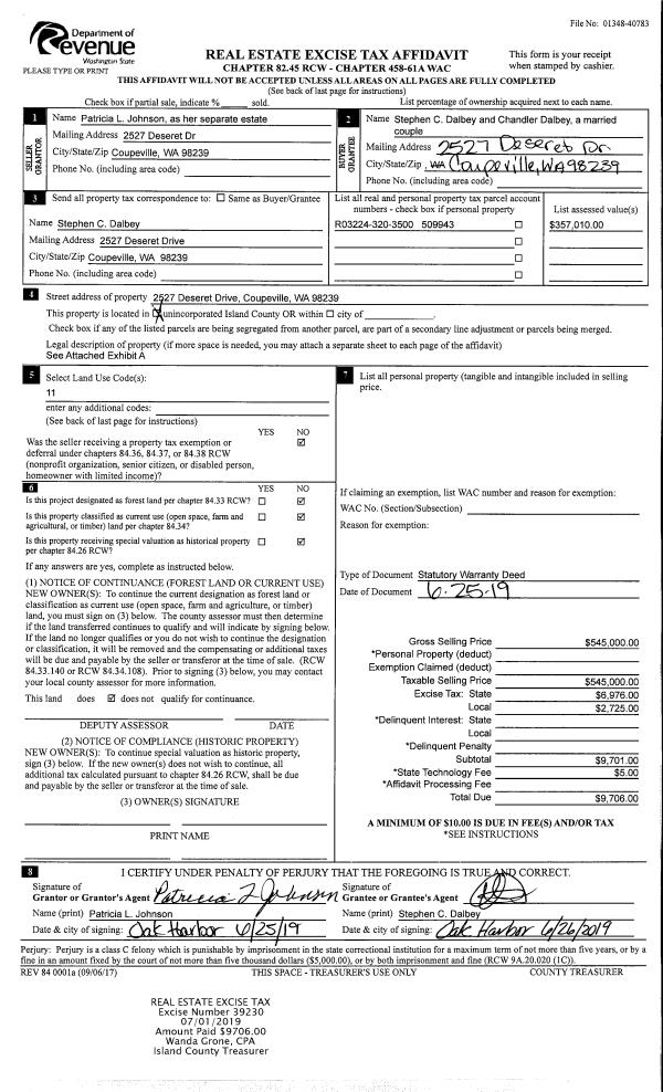 | 2 | 07/26/2019 | WD | Warranty Deed | CULTUS BAY INC | DARRACOTT, JOHN | | | $38,000.00 | 39612 | 4468232 |