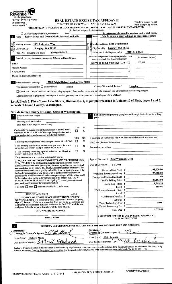 | Mailing Address: | 1856 WATKINS RD FREELAND, WA 98249 | % Ownership: | 100.0000000000% |