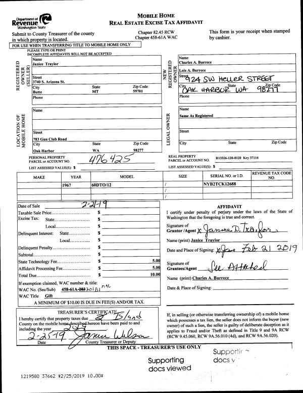 | Mailing Address: | 1927 BRIARWOOD DR OAK HARBOR, WA 98277 | % Ownership: | 100.0000000000% |