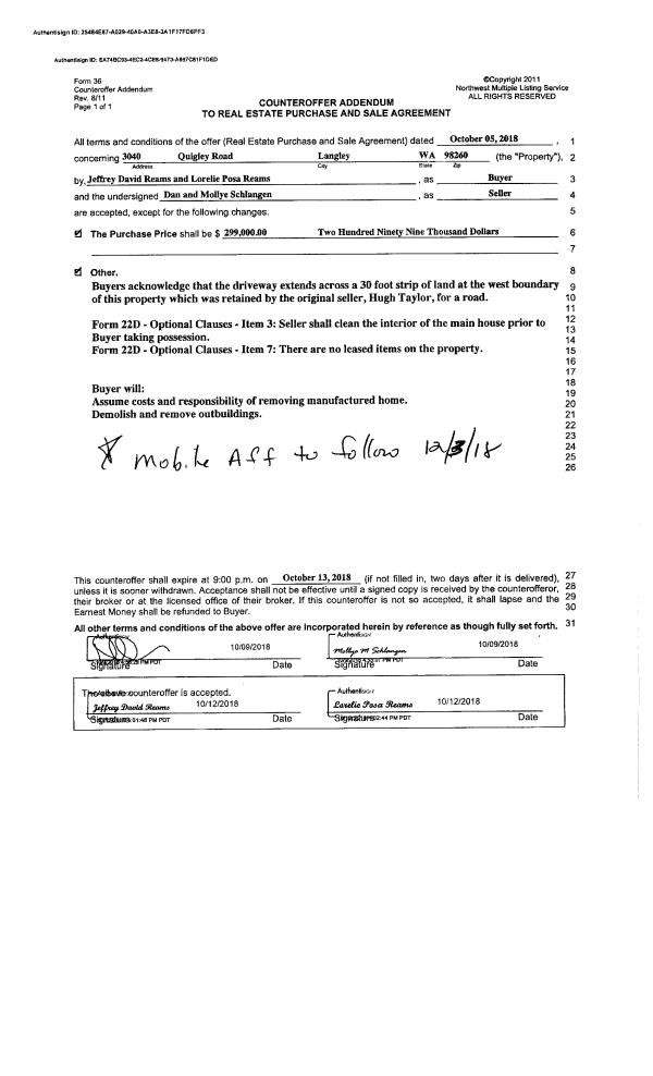 | 3 | 10/29/2018 | WD | Warranty Deed | MCPHERSON JTWROS, D J & J H | HISTORIC WHIDBEY | | | $265,000.00 | 36505 | 4454352 |
