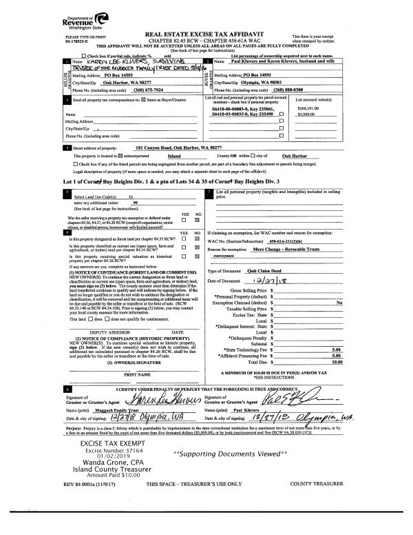 | Mailing Address: | 3196 HAWKS PRAIRIE RD OAK HARBOR, WA 98277 | % Ownership: | 100.0000000000% |