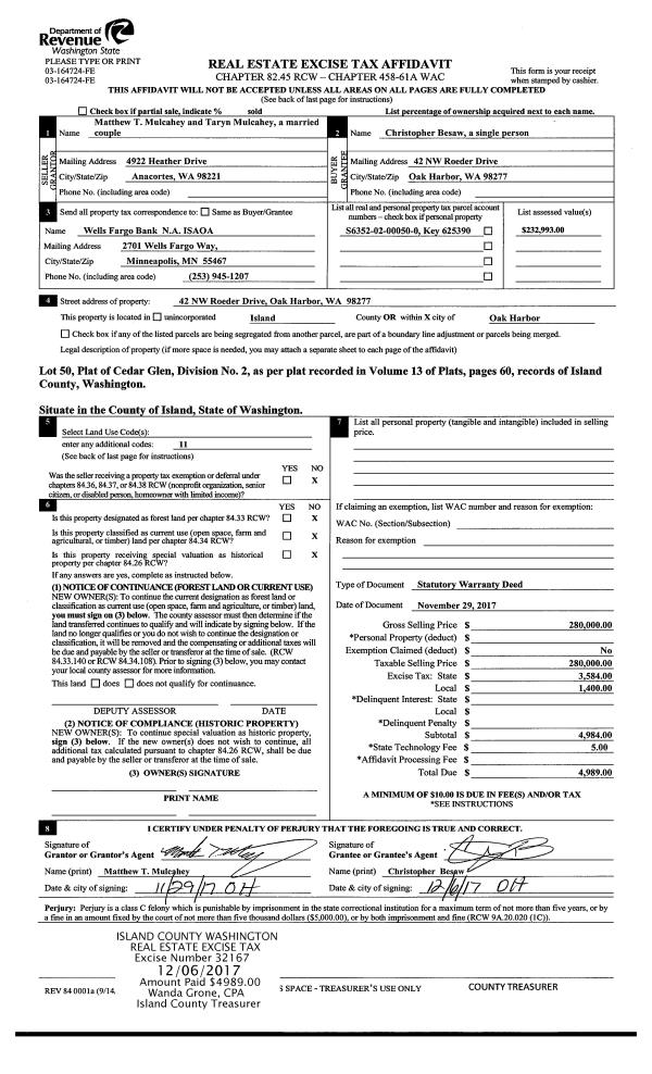 | Mailing Address: | 1467 NW 8TH AVE OAK HARBOR, WA 98277 | % Ownership: | 100.0000000000% |