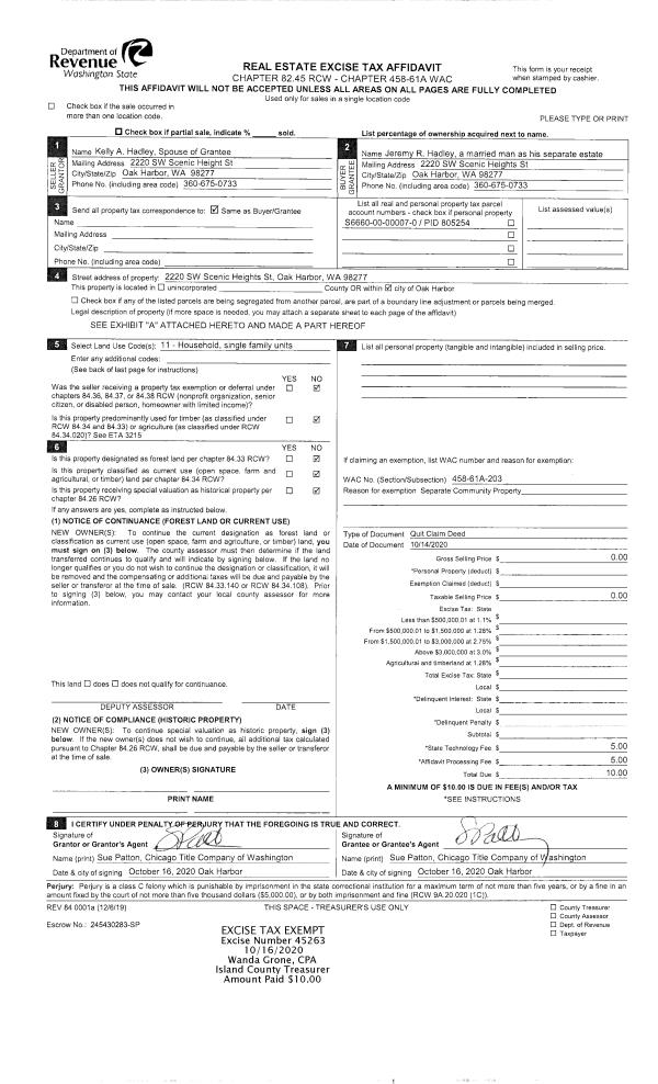 | Mailing Address: | 2548 S CAMANO DR CAMANO ISLAND, WA 98282-6366 | % Ownership: | 100.0000000000% |