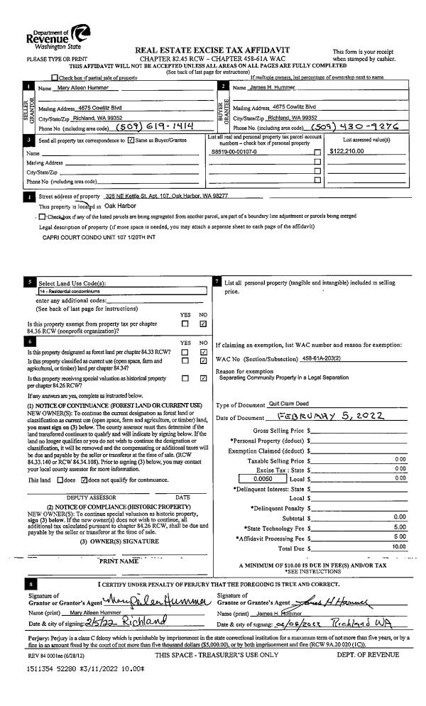 | Mailing Address: | 3590 S EAST CAMANO DR CAMANO ISLAND, WA 98282-5014 | % Ownership: | 100.0000000000% |