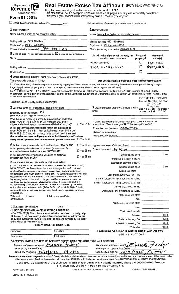 | Tax Area: | 712 - APPRAISER-S Whid Schl Dist, outside Langley, improved, greater than 1 acre | Land Use Code | 11 |