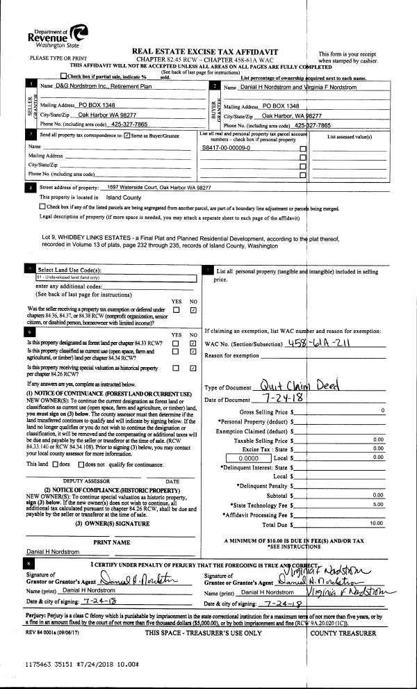 | Mailing Address: | ARLEN D GLORIA JTWROS 1780 SW NIENHUIS ST OAK HARBOR, WA 98277 | % Ownership: | 100.0000000000% |
