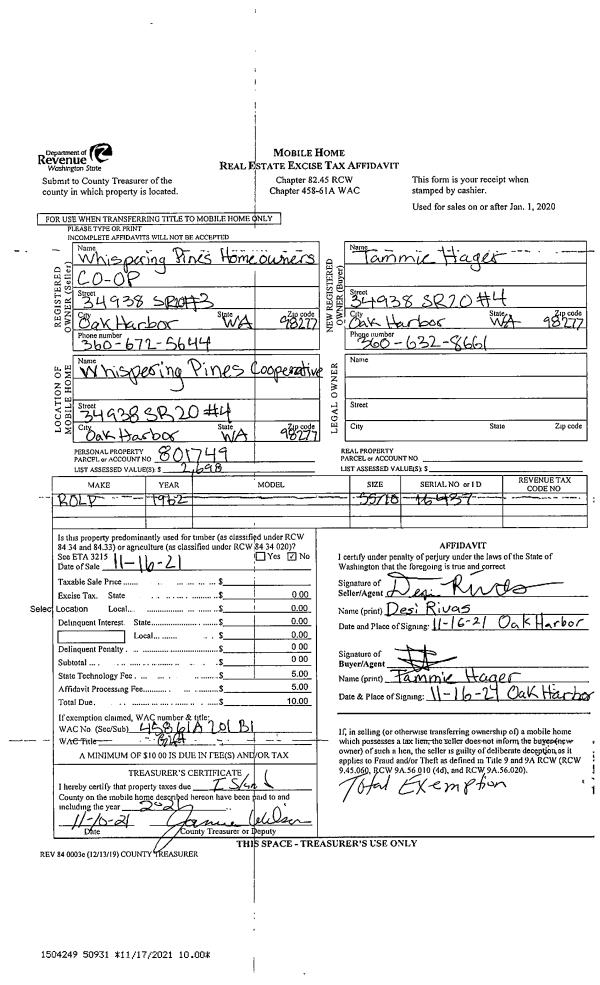 | Mailing Address: | JEAN LIND MURAMOTO 330 CORNET BAY RD OAK HARBOR, WA 98277 | % Ownership: | 100.0000000000% |