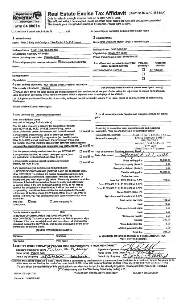 | Mailing Address: | 1400 PENN COVE RD OAK HARBOR, WA 98277 | % Ownership: | 100.0000000000% |
