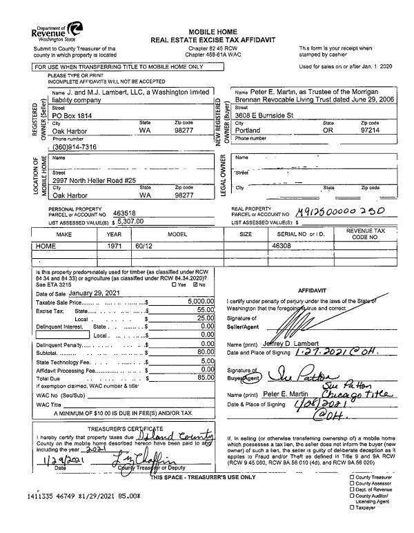 | Mailing Address: | 3667 RABBITG RUN RD LANGLEY, WA 98260 | % Ownership: | 100.0000000000% |