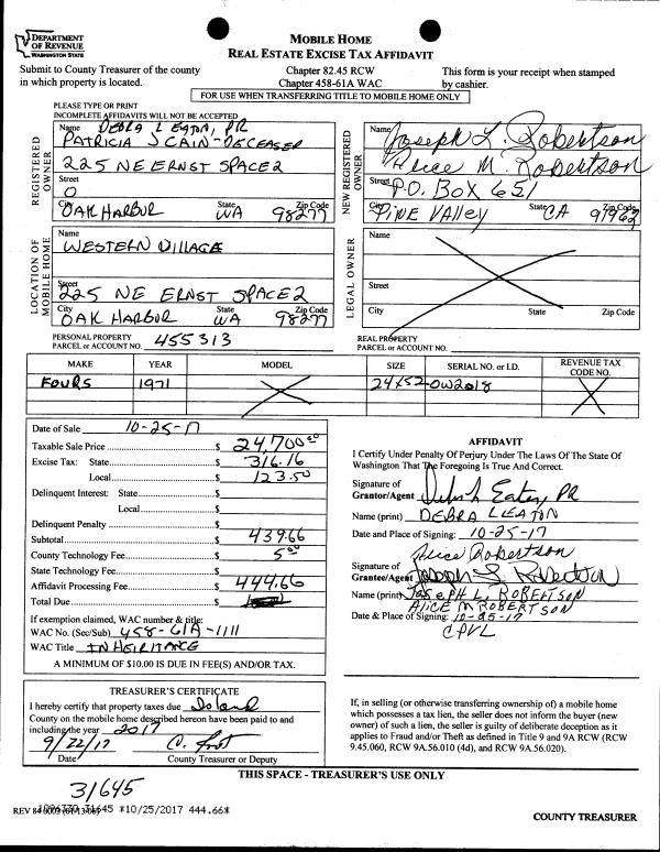 | 1 | 09/27/2017 | WD | Warranty Deed | LEAK, BRUCE | LEAK, BRUCE | | | $0.00 | 33212 | 4440425 |