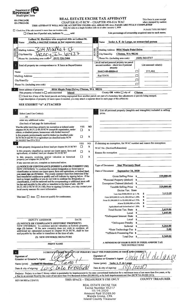 | Mailing Address: | 6064 SNAPDRAGON LN CLINTON, WA 98236 | % Ownership: | 100.0000000000% |