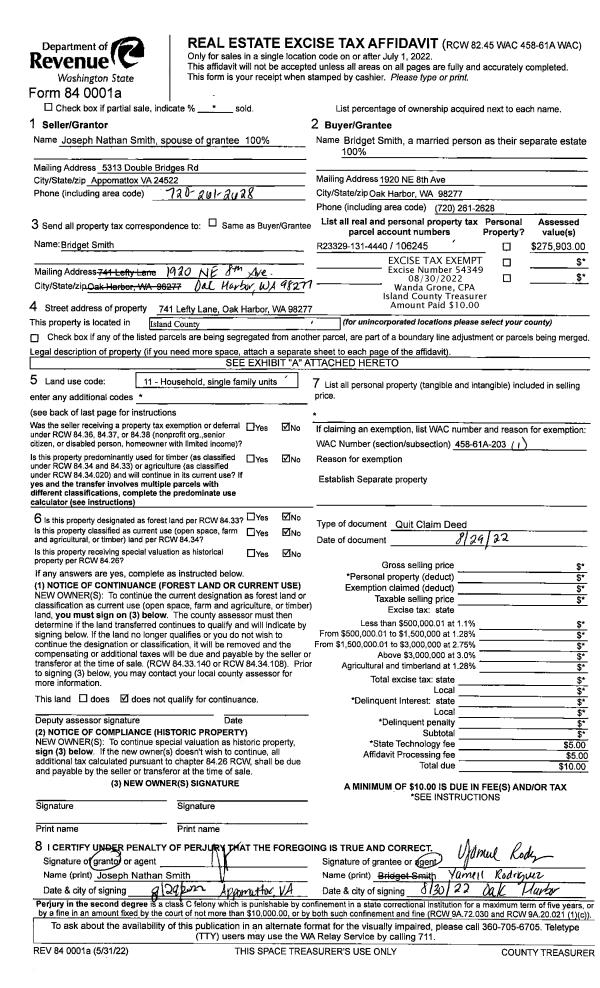 | Mailing Address: | 90 W DRY LAKE RD CAMANO ISLAND, WA 98277 | % Ownership: | 100.0000000000% |