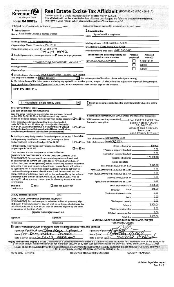 | Mailing Address: | 33285 STATE ROUTE 20 OAK HARBOR, WA 98277-8717 | % Ownership: | 100.0000000000% |