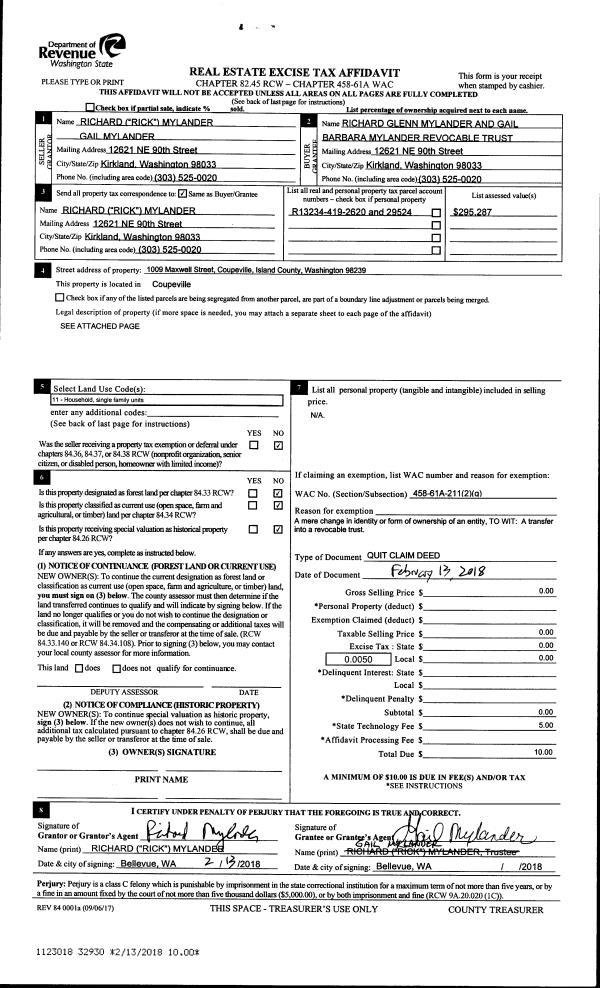 | Mailing Address: | ELAINE S REESE TTEE 6319 WILSON PL CLINTON, WA 98236 | % Ownership: | 100.0000000000% |